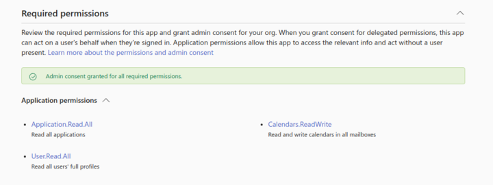 * Click `Accept`. If the permissions were updated, it will say `Admin consent granted for all required permissions`.