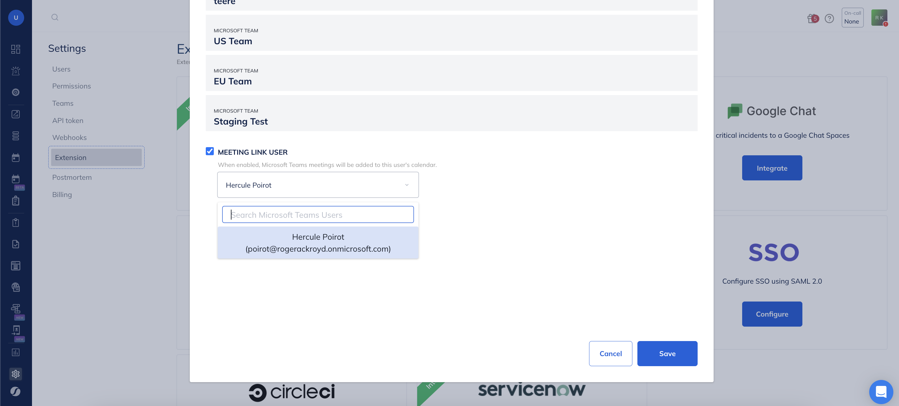 **(4)** Once successfully added, all of these will appear in Squadcast’s MS Teams Extension configuration.