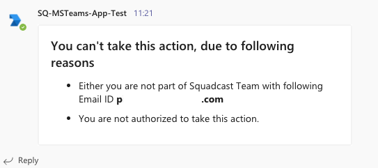 The `email address` used with your *user in MS Teams* and your *user in Squadcast* should be the same, if not, the integration will not work as expected.
