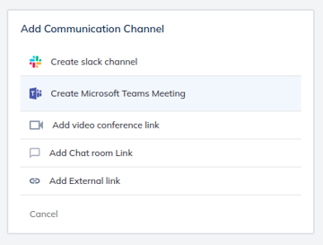 * To create these meeting links automatically for incidents, users can also create a new action in Workflows. This automatically creates a meeting link and adds it to the Communication Channel.