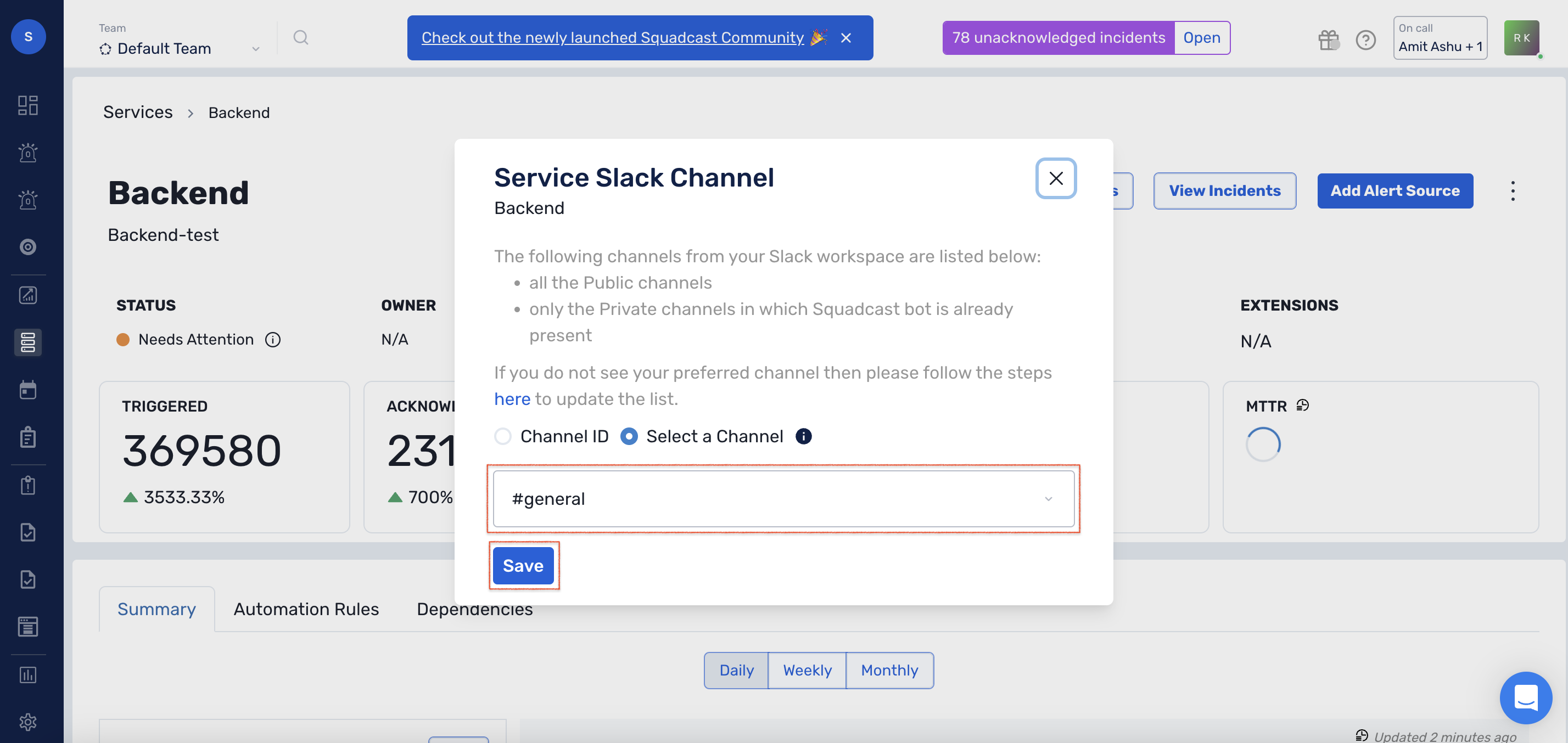 And you’re done! All the incidents triggered by this service will be pinged on the selected channel.