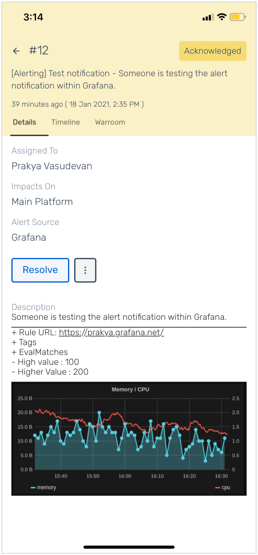 Now, whenever an alert is triggered in Grafana for that particular panel, an incident will be created in Squadcast.