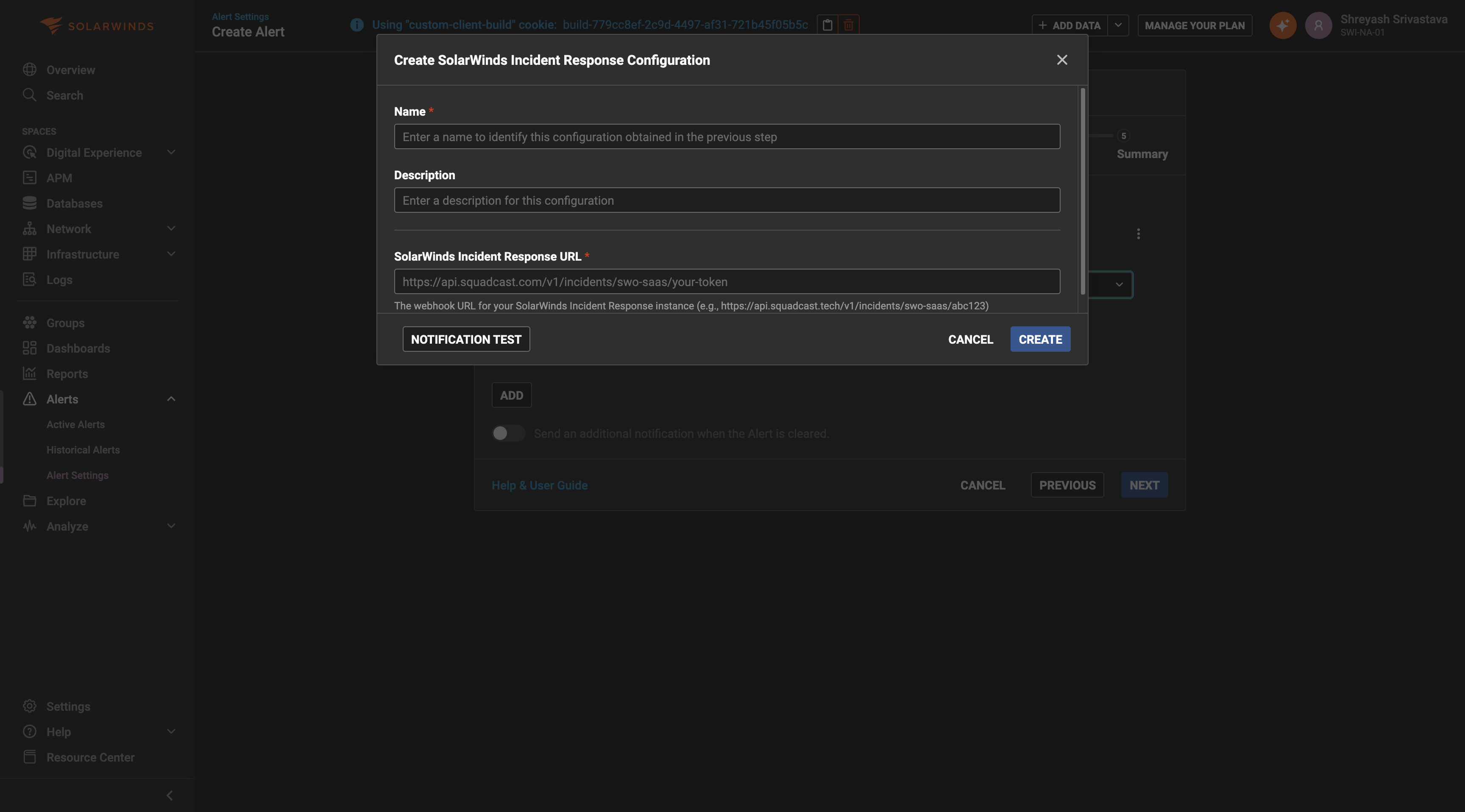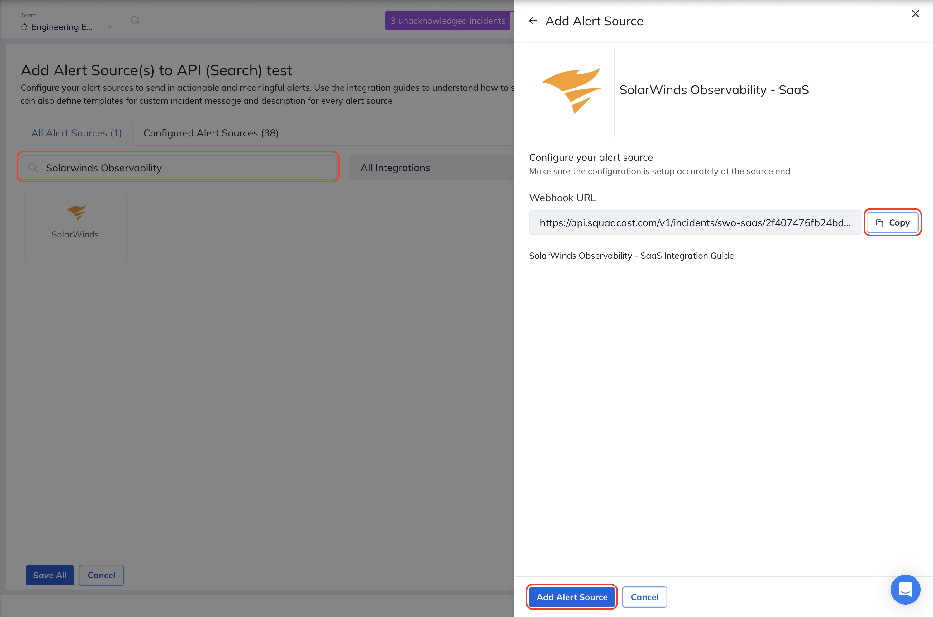 ### Adding SolarWinds Incident Response Webhook in SolarWinds Observability SaaS