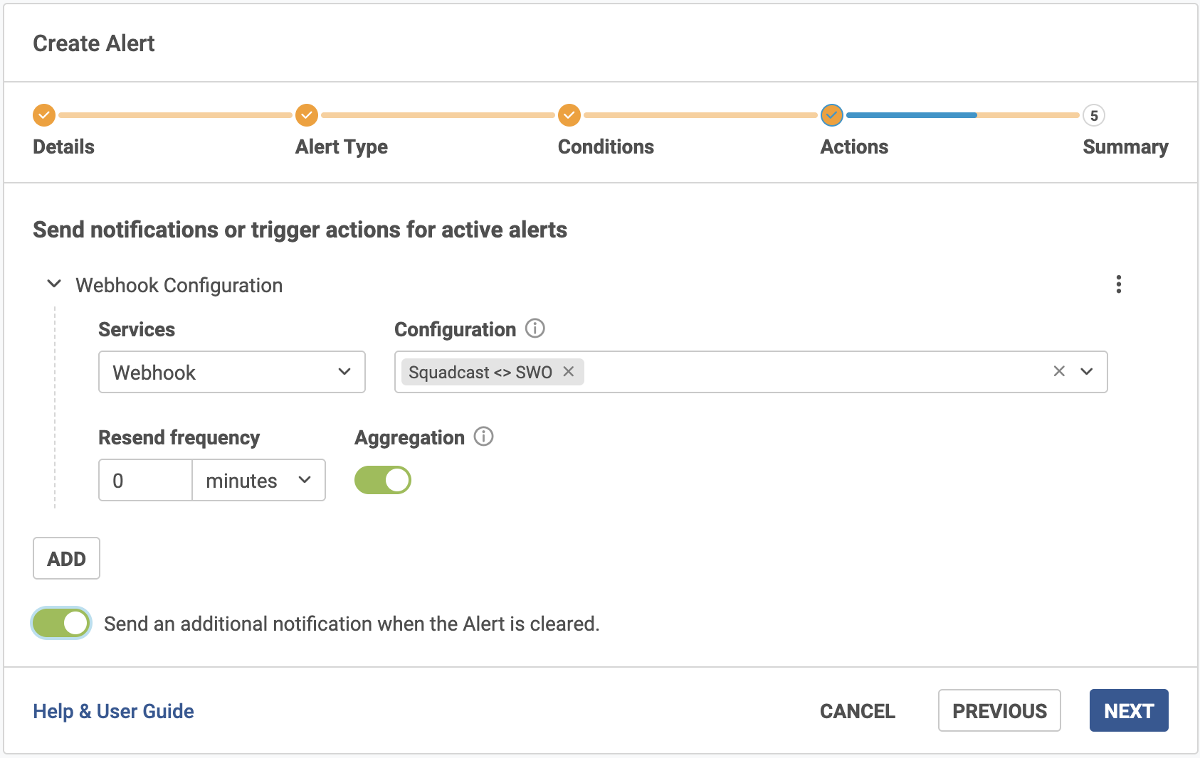 Ensure you **enable the toggle for receiving an additional notification when the alert is cleared** in order for this integration to support auto-resolution.