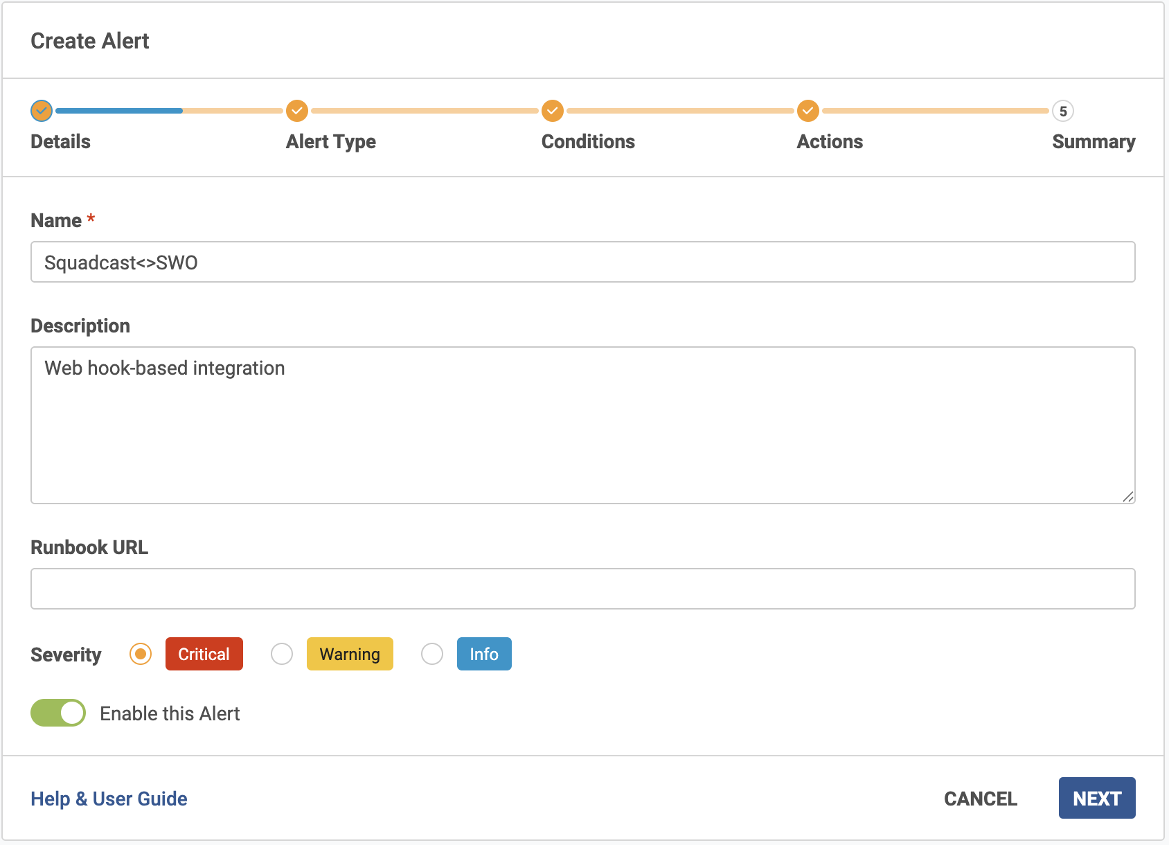That's it, you are good to go! Your SolarWinds Observability SaaS integration is now complete. Whenever SolarWinds Observability SaaS fires an alert through **Alerts > Notification Services**, an incident will be created in SolarWinds Incident Response for it. Also, when an alert has been **cleared** in SolarWinds Observability SaaS, the corresponding incident gets **auto-resolved** in SolarWinds Incident Response.