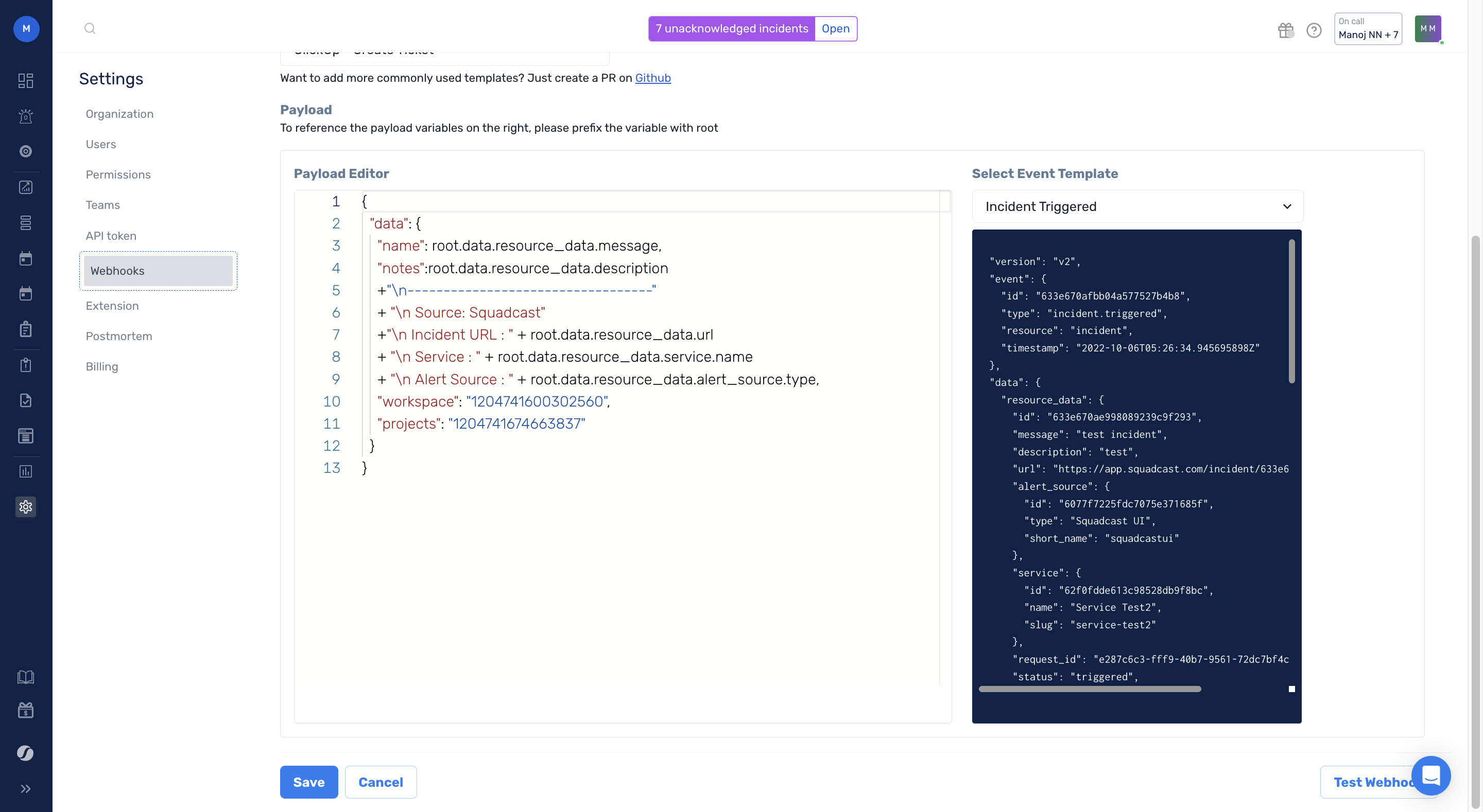 Click **Save** and your **Webhook** is created.
