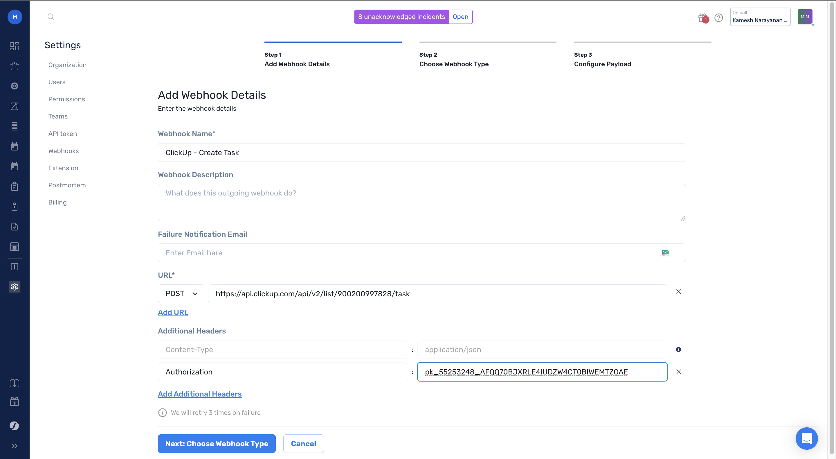 ## Using Webhooks to create ClickUp Tasks for Squadcast Incidents
