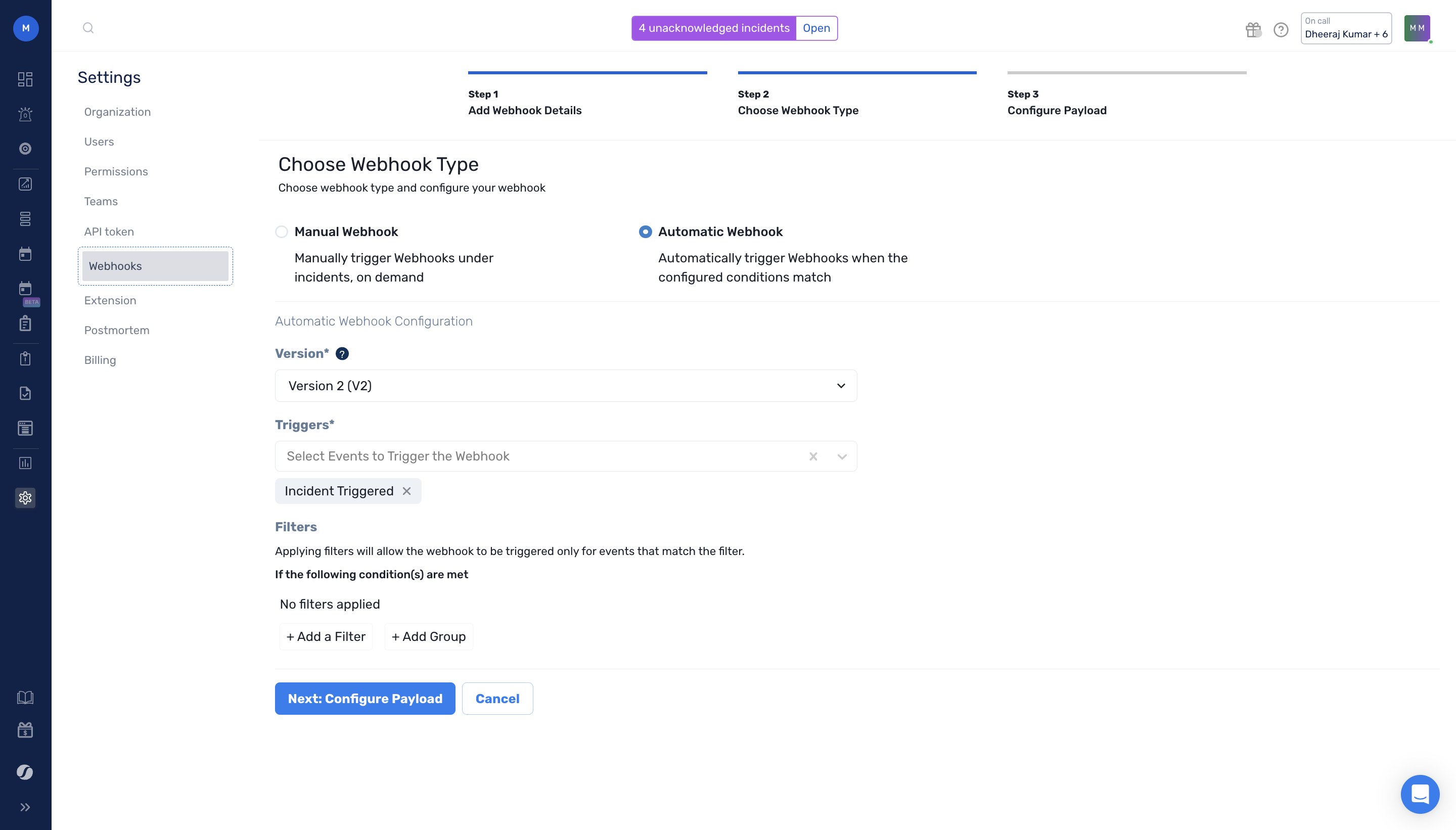 4. **Choose Webhook Type**: Choose Webhook type (Manual or Automatic) and add configurations.