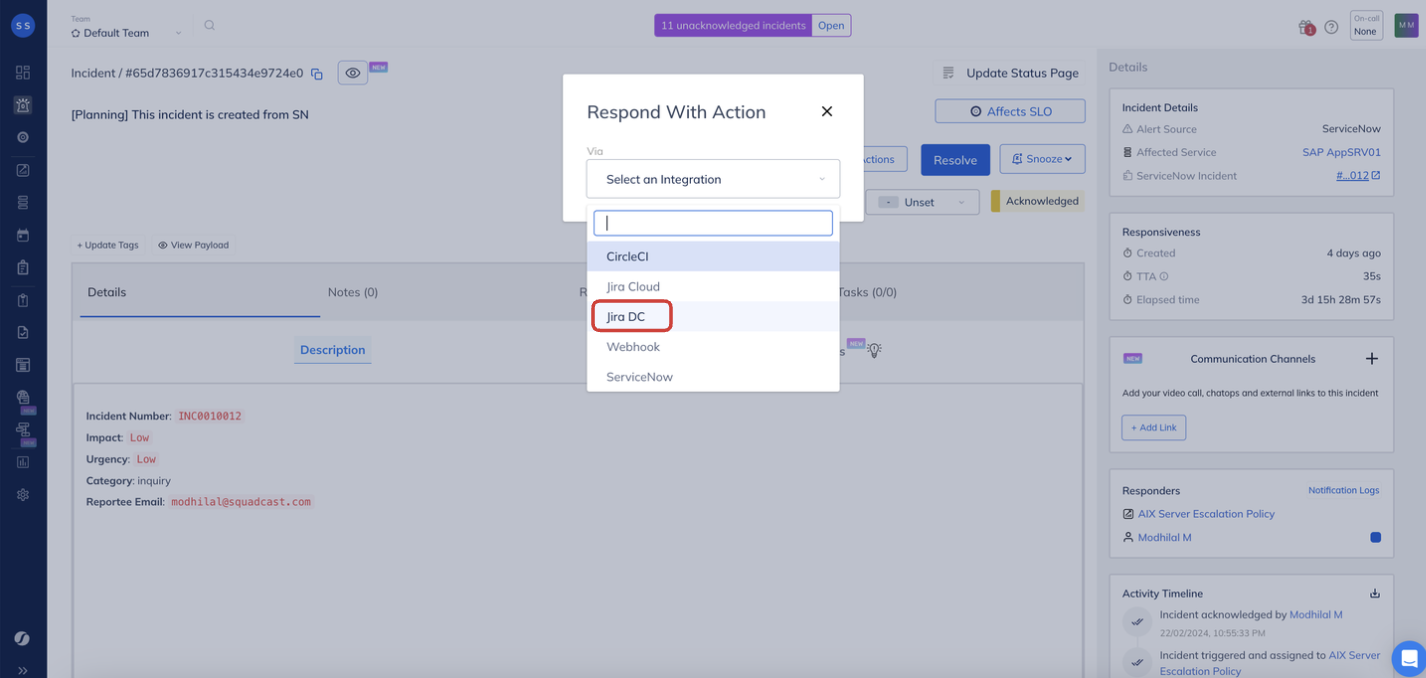 1. Open the incident in Squadcast and click on the **More Actions** button