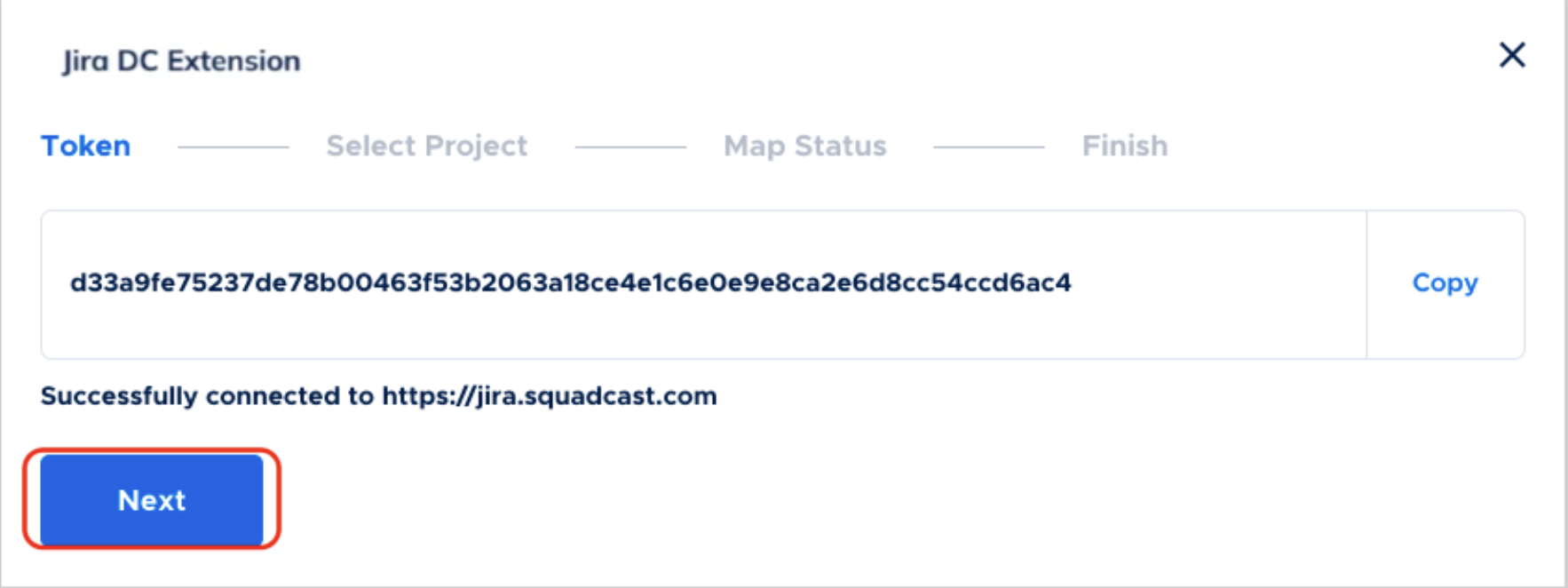 7. Move over to Squadcast and click on **Test Connection**. You will then receive a success message right below the text box. Post this, click on **Next**