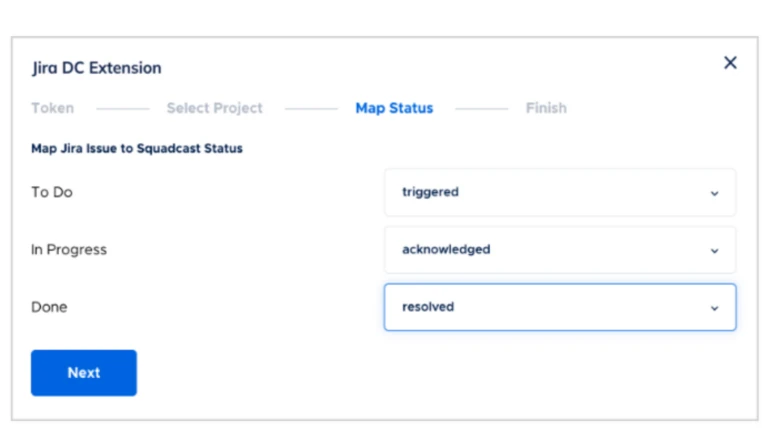 9. Then map the Jira issue status to the available Squadcast statuses and click **Next**