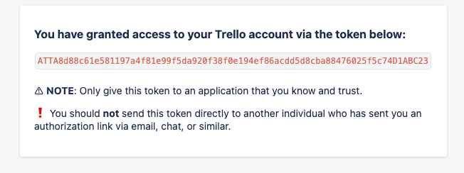 For generating an API key and Token, you first need to have created a Trello Power-Up.
