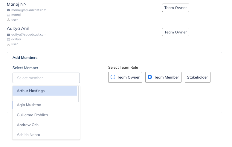 <figure><img src="https://1574591692-files.gitbook.io/~/files/v0/b/gitbook-x-prod.appspot.com/o/spaces%2F8TaWz01jmUJl58p4ZVel%2Fuploads%2Fgit-blob-c9a02fb88e467cb429bf5ef4338ed1da7b7d0057%2Fadd_and_delete_teams_1%20(1)%20(1)%20(3)%20(1)%20(1)%20(1)%20(1)%20(1)%20(1)%20(1)%20(1)%20(1)%20(1)%20(1)%20(1)%20(1)%20(1)%20(6).png?alt=media&#x26;token=2f625b59-78a7-4fa2-b7ad-27189999a795" alt="How to add a new member in an existing team in Squadcast" width="563"><figcaption></figcaption></figure>