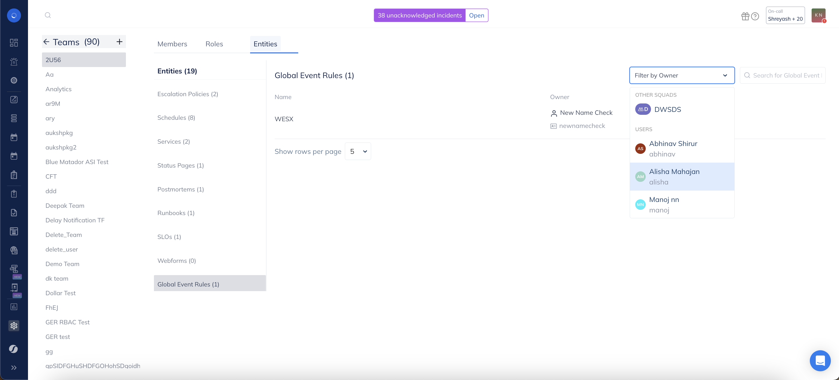 Each team has ownership of specific entities that they are responsible for, or are unique to them. You can easily search for these entities or filter them based on their owner.