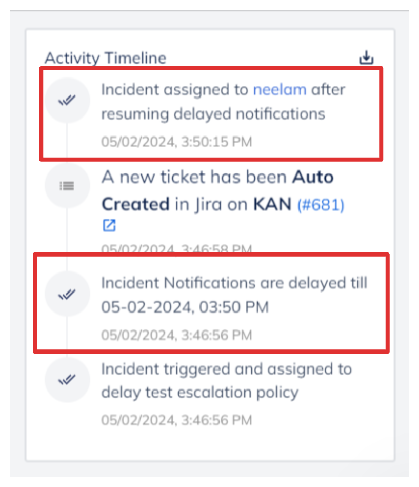 When Delayed Notifications is enabled for a Service, and notifications are delayed for incidents of that Service, you can identify those incidents in the Incident List with the help of the highlighted icon in the image below.