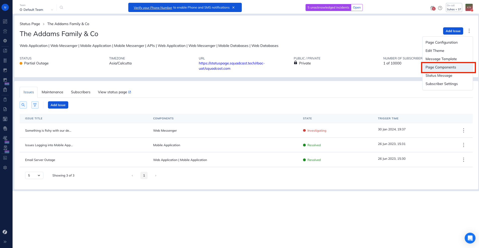 2. Click on the status page to navigate to the **Status Page Details page**.